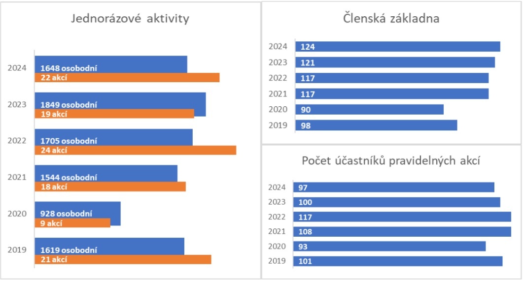 Děkujeme také všem, kteří svou podporu vyjádřili svým členstvím. Kombinace počtu pořádaných akcí a počtu členů je kritériem pro výši získané dotace, ze které můžeme naše akce podporovat, aby nemusely být pro účastníky ani dobrovolníky finanční zátěží.
